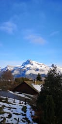 The highlight is the balcony with a stunning view of the mountains, ideal for sunny day meals! A sled is also available for children (and adults!).