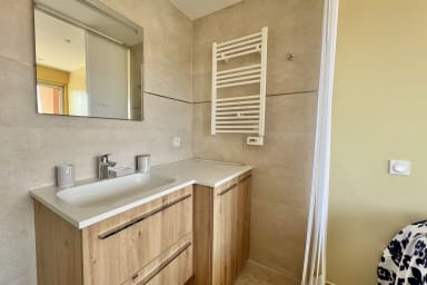- a 20 m2 sea-view terrace with electric plancha, table for 6, lounge area (sofa, 2 armchairs and coffee table), solarium with 2 deckchairs.
