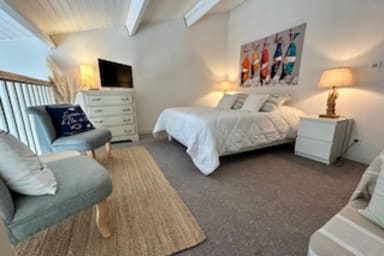- a mezzanine bedroom with a double bed and 1 bunk bed;