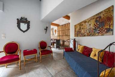 HostnFly offers you this spacious 96 m² house, carefully renovated in a medieval style. With 3 bedrooms, plenty of storage space and a capacity of 6 people, it combines comfort and authenticity. Ideally located at the foot of the town, just a stone's throw from all amenities, it will plunge you into the heart of history.