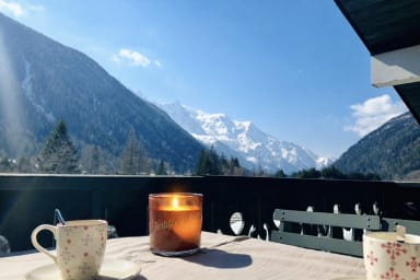 - a magnificent balcony with a splendid view of Mont Blanc, complete with table, chairs and deckchairs to let you admire the scenery.
