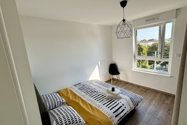 HostnFly offers you this modern apartment located in Illkirch-Graffenstaden, just a few minutes from Strasbourg. Perched on the top floor of a quiet building, this accommodation offers a breathtaking view of the cathedral of Strasbourg and has many facilities for a comfortable stay. It can accommodate up to 4 people, ideal for a family getaway, with friends or for a business trip.