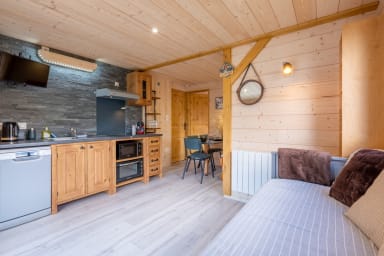The modern shower room is equipped with a walk-in shower, towel dryer and washing machine for maximum comfort. The fully-equipped kitchen has everything you need to prepare delicious meals: dishwasher, large mini-oven, microwave, hooded hob and Tassimo coffee maker. For lovers of Savoyard cuisine, you'll also find a raclette and fondue machine, and a plancha. An iron with ironing board and hairdryer are also available for your convenience.