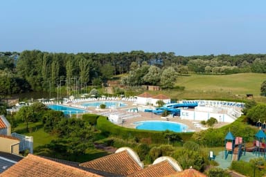 It is also very popular for its location: 2 18-hole golf courses, mini golf, ping pong table, bowling alley, children’s games, several tennis courts, lake restaurant, bars and restaurants on the harbor, all shops nearby, bike rental, the port of Bourgenay with different activities possible in season, bike paths and hiking trails for nature walks around the residence, village animations in July and August, the castle of Talmont, fortress of the Middle Ages where resided Richard Lionheart.