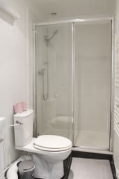 A functional shower room with toilets ;