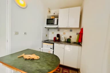 The following facilities will be at your disposal: Private parking accessible with magnetic badge, Shared swimming pool (open from mid-June to mid-September, from 9 am to 7 pm), Hair dryer, TV, Heating, Coffee machine, Heating, Fan, Vacuum cleaner, Microwave, Hot water, Iron, Balcony, etc.