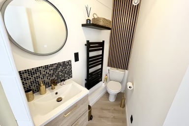 You will appreciate the functional shower room, the fully equipped kitchen, and a cozy living room to relax in after a busy day.
