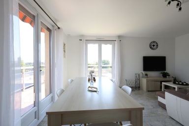 Ideally located, the accommodation is just a 10-minute walk from a supermarket "Lidl", 6 minutes by bike from the beach, and 5 minutes by car from the city center with its must-sees. La Base Nature François Léotard is located 2.5 km away, giving you easy access to various outdoor activities.