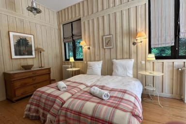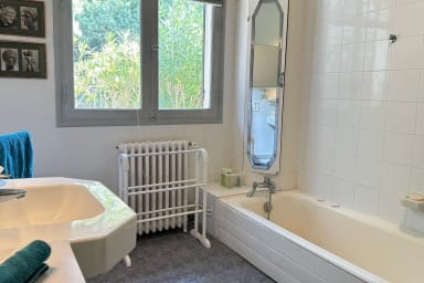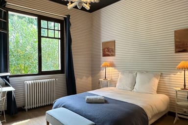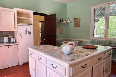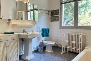 The property offers a wide range of amenities, including Wi-Fi, a dishwasher, two coffee machines, a television, a washing machine, a dryer, a terrace, a large garden, a ping-pong table, a basketball hoop, and a private swimming pool. One or two cars can be parked at the back of the house. Bed linen and towels are included in the cleaning fee, allowing you to travel light.