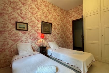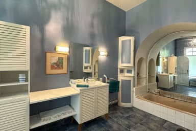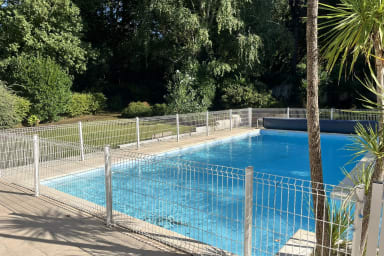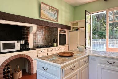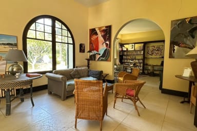 The house is tastefully furnished and decorated with works of art, retaining its original charm. The living room is particularly spacious and opens onto a large terrace overlooking the pool. The large garden is fully enclosed, bordered by forest and trees, providing a peaceful and secure setting with no neighboring disturbances. It is suitable for young children.