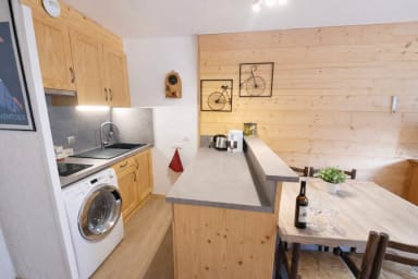 The studio is bathed in natural light and offers a breathtaking view of the Aravis mountain range. You will also be close to various restaurants to savor the local gastronomy and only 8 minutes walk from the supermarket "Sherpa Supermarché Grand Bornand" for all your daily needs.