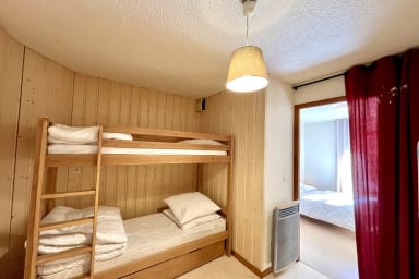 With an area of 42 m 2, it can accommodate up to 5 people. You will find a room with a double bed 140x190 and another room with a 90x190 bunk bed, including a third bed in a drawer. The kitchen, fully equipped, will allow you to prepare your meals with ease. The living room is perfect for relaxing after a busy day, and the bathroom provides all the necessary comfort.