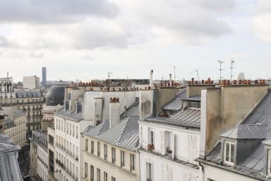 One of the major assets of this apartment is its brightness, as well as its privileged location. You will enjoy a view over the rooftops of Paris, with a panorama of the Eiffel Tower, the Opera Garnier and the Pantheon. Facing south, you can admire magnificent sunsets, except in case of rain. The accommodation is also close to metro lines 7, 2 and 9, facilitating your travel around the city.