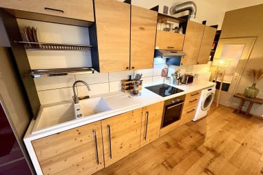 This beautiful apartment in Nantes is ideal for a functional and relaxing stay. With an area of 52 m 2, it can accommodate up to 4 people. You will find a bedroom with a double bed 160x190, another room with a sofa bed 140x200, a fully equipped kitchen, a shower room and a comfortable living room to relax after a day of walking.