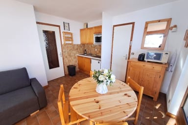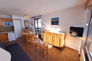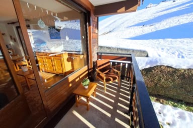 One of the major assets of this apartment is its magnificent view. It is also very popular for its location at the foot of the slopes, offering you easy access to mountain activities during winter and summer.