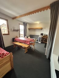 This beautiful studio in Risoul is ideal for a functional and relaxing stay. With an area of 30 m 2, it can accommodate up to 5 people and includes a mountain corner with a bunk bed 90 190, a fully equipped kitchen, a bathroom, and a living room with two sofa beds 140x200 to relax after a day of walking.