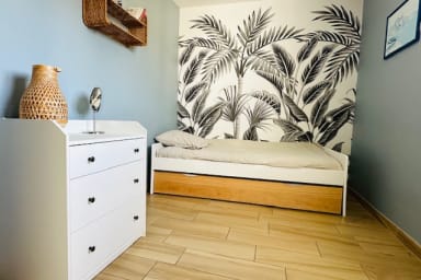 Discover this beautiful house in La Rochelle, perfect for a functional and relaxing stay. With an area of 56 m 2, it can accommodate up to 6 people, offering an ideal space for families or groups of friends. You will find a bedroom with a double bed, a second bedroom with a pull-out bed, a fully equipped kitchen, a shower room and a comfortable living room with a sofa bed, perfect for relaxing after a day of discoveries.