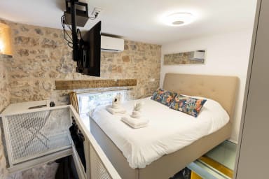 The apartment features a double bed accommodating up to two people in a high-end setting.