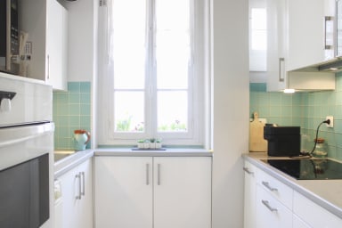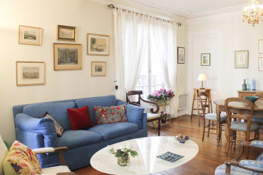 This light-filled space boasts three different exposures, original parquet floors, and elegant moldings that highlight the charm of Haussmannian architecture. Ideal for a functional and relaxing stay, the apartment comprises a welcoming living room with a sofa for your comfort, a fully equipped kitchen, and a modern shower room.