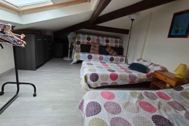 The sleeping area is optimized to accommodate up to six people. It comprises a first bedroom with two single beds and a sofa bed, a second bedroom with a comfortable double bed, and an additional sofa bed in the living room for your relaxation.