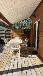 The Chalet is fully air-conditioned and offers complete amenities such as a coffee machine, washing machine, iron, hairdryer, and a private parking space for your vehicle.