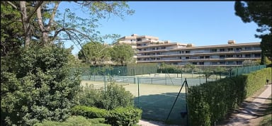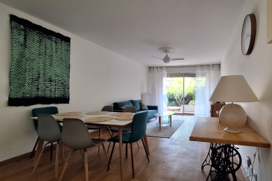 The kitchen is fully equipped for your meals with a dishwasher, oven, microwave, coffee maker, refrigerator, and even a raclette grill. The living room, equipped with a television, opens onto a private garden with a cool, shaded area furnished with a teak table, four chairs, a large parasol, and two sun loungers. For your comfort, the apartment includes air conditioning, a fan, a washing machine, an iron, and a hairdryer. You will also have access to the shared swimming pool, open from late May to mid-September, from 10:00 AM to 7:45 PM and supervised by a lifeguard, as well as access to the residence's tennis courts.