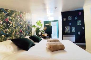 Welcome to our “La Jungle” duplex, a 42-square-meter apartment that has been completely redesigned with a carefully curated themed decor to offer you a complete change of scenery. Whether you’re here on a business trip or a vacation, this lush retreat combines modern comfort with an exotic atmosphere.