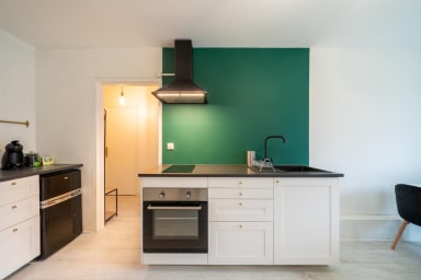 In terms of amenities, the apartment is perfectly equipped to make your daily life easier. You will enjoy a bathroom and a fully equipped kitchen including an oven, a microwave, and a Senseo coffee machine for your mornings.