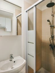 Aménagé dans un ancien local commercial avec vitrine, ce logement atypique est en rez-de-chaussée sur rue. L'entrée dans le logement se fait directement depuis la vitrine sur rue. Il ne dispose pas de fenêtres, mais reste agréable et fonctionnel pour un séjour de courte durée.