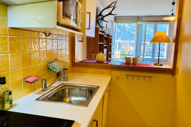 HostnFly vous propose ce charmant logement de 30 mètres carrés, situé à Chamonix et offrant une VUE époustouflante sur le MONT-BLANC et la ville.