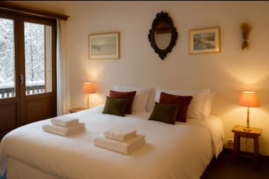 Le chalet est composé de 5 chambres, ou vous trouverez 4 lits doubles et 1 lit simple. Un lit pour bébé est également disponible. Il y a "une suite parentale" avec 1 salle de bain. Le reste du chalet offre 1 salle de douche mais chaque chambre dispose d'un lavabo. Le coin salon - salle à manger est très agréable et donne sur un large balcon tout en longueur avec vue sur le MONT BLANC. Le chalet possède un grand jardin privatif qui sera très apprécié en été comme en hiver.