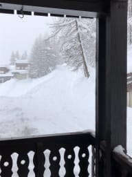 Le logement possède un balcon qui donne sur les pistes.