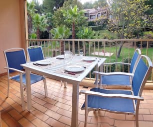 Vous pourrez profiter de la TERRASSE, qui est très agréable pour manger dehors. Vous pourrez aussi vous détendre dans la PISCINE de la résidence et dans les JARDINS. Il y a aussi des terrains de jeux pour enfants.