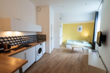 Moderne et lumineux 🌟, ce studio dispose d’un lit gigogne 🛏️ permettant d’accueillir jusqu’à deux personnes.