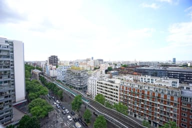 Bienvenue chez moi ! Je vous accueille dans mon logement de 65 mètres carrés en plein coeur du 13ème arrondissement de Paris, localisé au 13ème étage avec ascenseur. Très lumineux, il dispose aussi d'un balcon et de baies vitrées vous permettant d'admirer la vue sur Paris, où vous pourrez apercevoir la Tour Eiffel, la Cathédrale notre Dame, la Tour Montparnasse ... Il est idéalement situé proche de la Seine et de ligne de métro 6. Très bon séjour ! :)