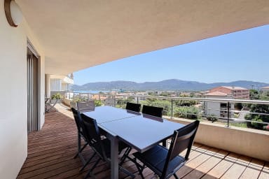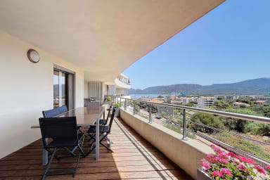 Vous pourrez profiter de la terrasse qui offre une incroyable vue sur la MER, et pourrez y prendre un apéritif et diner à l'extérieur. La résidence possède également une piscine collective, qui sera accessible pour vous relaxer au soleil.