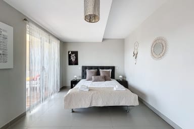 Le logement est lumineux, élégant, cosy et est composé de d'une suite parentale et de deux autres chambres avec lits doubles, 2 salles de bain, une cuisine moderne et un bel espace séjour et peut accueillir jusqu'à 6 personnes.