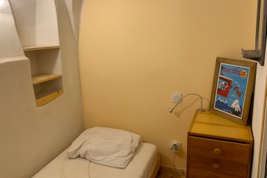 1 chambre de 5 couchages avec lits superposés (90x200), 2 lits simples et un lit gigogne (80x200) ;