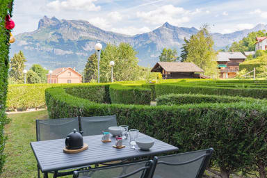 Vous disposerez également d'une terrasse aménagée, où vous pourrez prendre vos apéritifs au calme ; et d'un joli jardin offrant une magnifique vue apaisante sur la montagne !