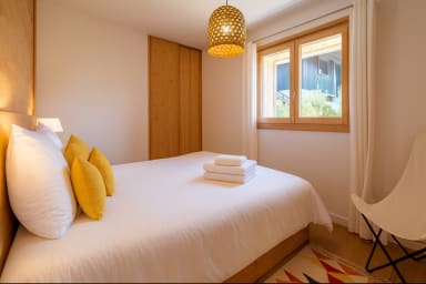 Il est composé de 4 chambres, 1 salle de bain et 2 salles de douches, une cuisine équipée, un joli salon et salle à manger donnant sur un grand balcon meublé pour admirer le Mont-Blanc tout en savourant un bon repas.