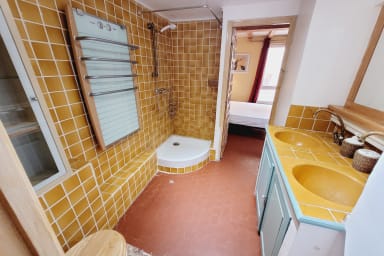 Une salle de douche partagée entre les deux chambres doubles (accès par l’une d’elles pour la chambre simple).