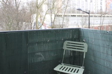 Un balcon aménagé avec table et chaises, idéal pour profiter d’un moment au calme.