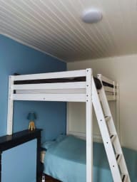 - 2 chambres, l'une avec un lit double et l'autre avec deux lits double d'ont un lit double en hauteur ;