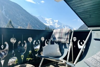 - un magnifique balcon offrant une vue splendide sur le Mont-Blanc, doté d'une table, de chaises et de transats pour vous laissez admirer le paysage.