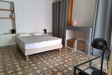 Composé de grandes et belles pièces, vous apprécierez particulièrement la localisation du logement qui est dans une petite rue calme. Il possède aussi une belle terrasse ombragée (rosier et glycine) avec des chaises longues.