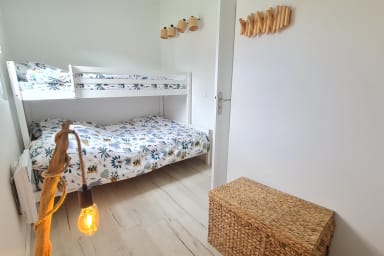 D'une superficie de 60 mètres carrés, elle offre trois chambres dotées de nombreux rangements et peut héberger jusqu'à six personnes.