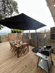 - une terrasse aménagée offrant une petite vue sur la mer ;
