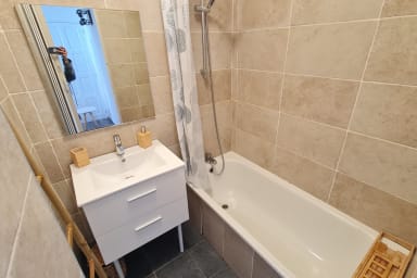 - une salle de bain avec baignoire et un WC séparé ;