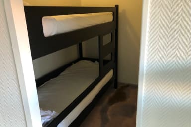 - deux chambres avec un lit double (140) et un lit superposé ;