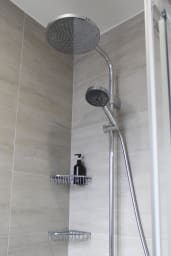 Une salle d’eau avec douche et WC